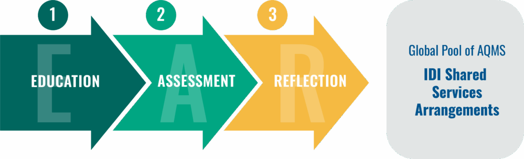 Como parte de este proceso, los alumnos documentarán sus ideas en el Portafolio de Desarrollo Profesional Inicial (IPDP). Este portafolio sirve como registro de aprendizaje personal y herramienta de planificación, permitiendo a los alumnos pensar críticamente sobre cómo sus nuevos conocimientos y habilidades pueden ser adaptados y aplicados dentro del contexto único de su EFS. Para apoyar esto, se proporcionará un conjunto de preguntas guía para ayudar a enmarcar su pensamiento y fomentar una reflexión más profunda. Estas preguntas invitarán a los alumnos a explorar no sólo lo que han aprendido, sino cómo puede integrarse en sus sistemas, estructuras y trabajo diario, en relación con su función facilitadora como especialistas en AQM.