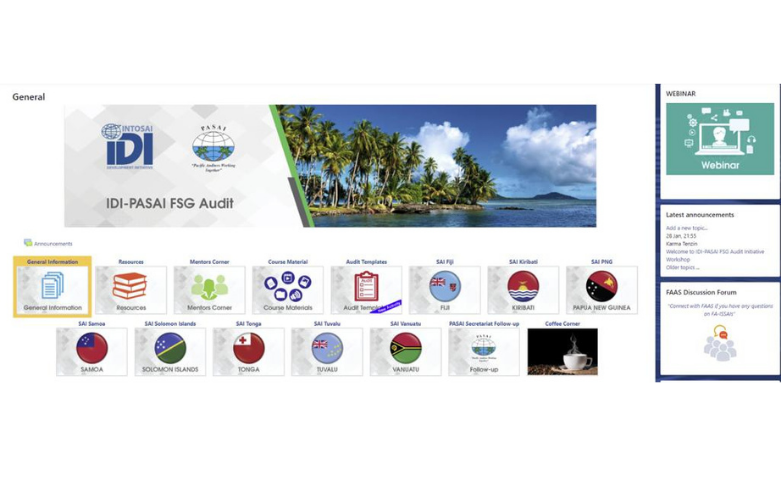 The support under this initiative covers ISSAI Implementation Needs Assessment for Financial Audit, and to audit of Financial Statements of Governments following ISSAIs. A week-long workshop which was the beginning of this support was delivered to a total of 43 participants. Owing to the current COVID-19 pandemic, the support for needs assessments and audits will be provided mostly online through a virtual workspace. IDI and PASAI jointly created this workspace, which is hosted on PASAI Learning Management System (LMS).