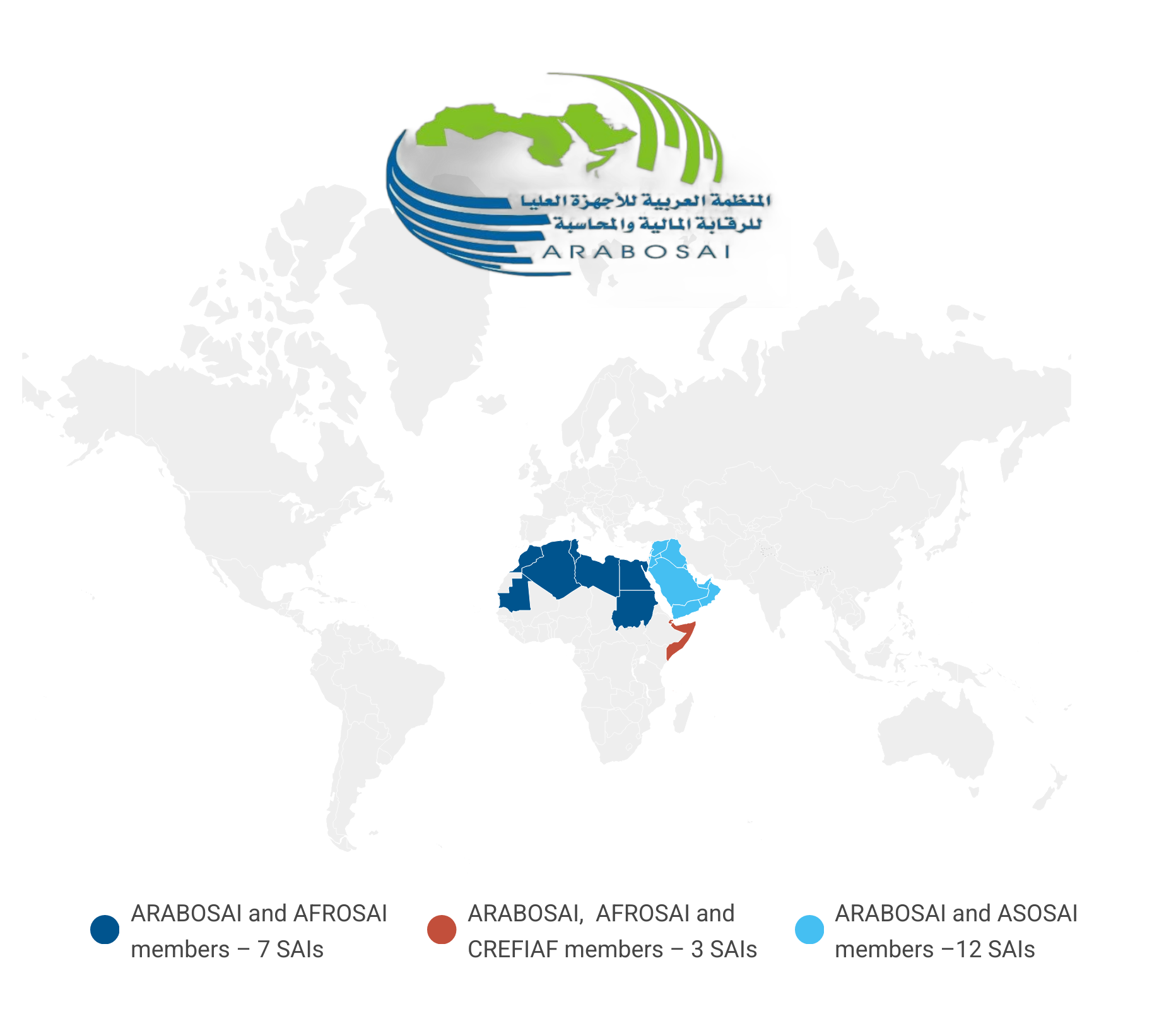 ARABOSAI has 22 members in total, of which 10 are in Africa and 12 in Asia. These members vary in terms of SAI models, size, and level of development. The SAIs of Comoros, Djibouti and Somalia are members of ARABOSAI, but due to language, they participate in IDI-CREAFIAF initiatives.