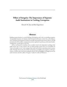 Pillars of Integrity: The Importance of Supreme Audit Institutions in Curbing Corruption is a 1998 publication from the The Economic Development Institute of the World Bank. It is authored by Kenneth M. Dye and Rick Stapenhurst.