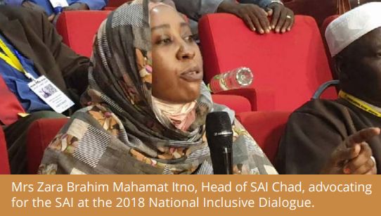 In a national environment characterised by chronic institutional instability and increasing insecurity since the accession of the country to national sovereignty from a French colony in 1960, and especially over recent years with the terrorist threat, it might have seemed extremely ambitious to expect a strong response from the SAI. However, this was without considering the will and the fortitude of the Head of the SAI, Mrs. Zara Brahim Mahamat Itno. Thanks to a strategic approach to mobilising the SAI’ stakeholders, and despite the institution’s lowlier status and unfavorable circumstances, she was able to uphold the SAI’s cause among the Chadian institutions that make themselves heard among different groups of interested stakeholders both nationally and internationally, and whose voices count.