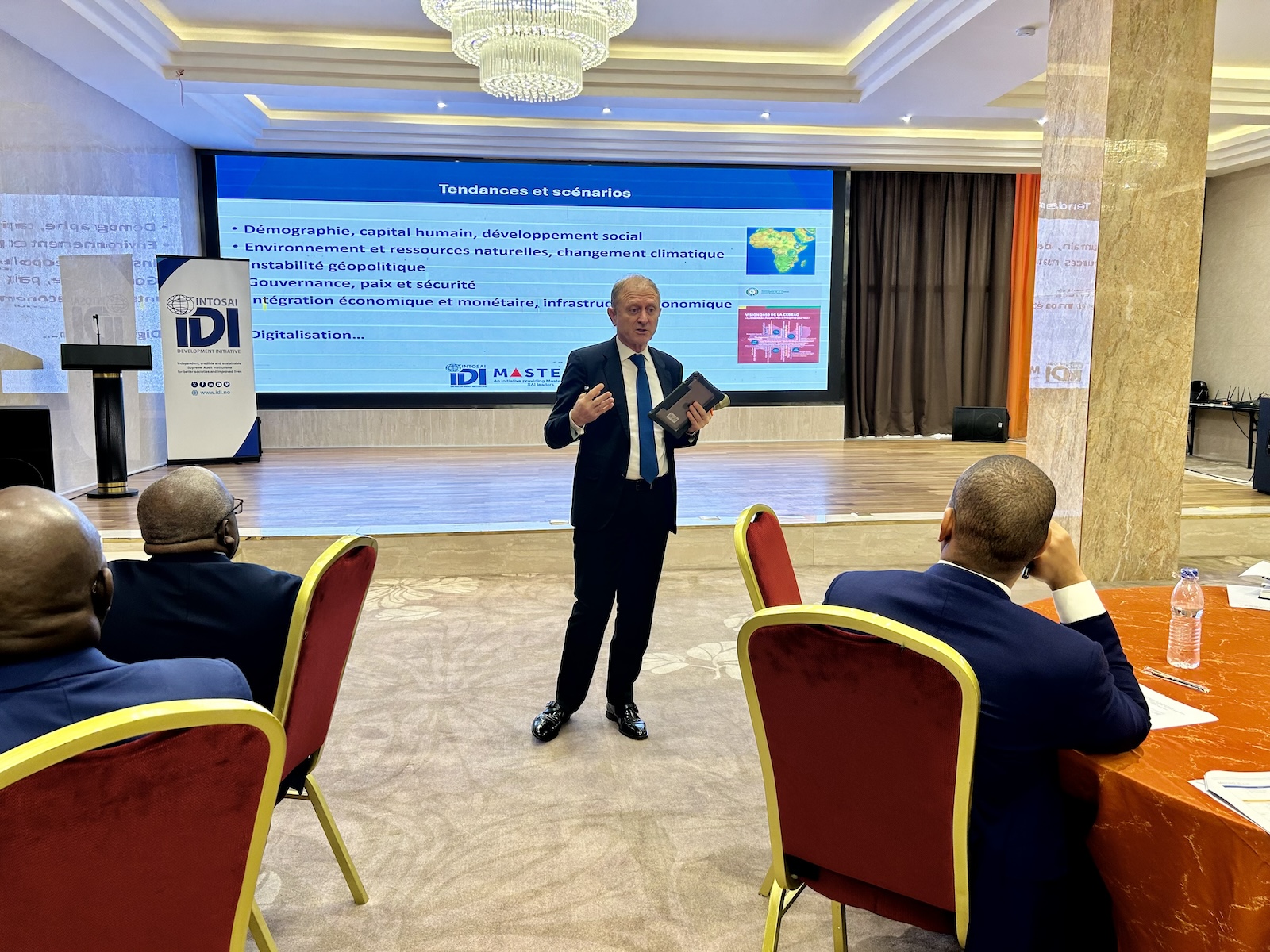 After successfully launching the Mastery Initiative for SAI Leaders in English-speaking regions of INTOSAI over the past two years, IDI has expanded its reach to the French-speaking world with its platform dedicated to sharing knowledge and experiences between heads of SAIs. This was showcased during the Masterclass on Public Financial Management and Strategic Foresight for francophone African heads of SAIs, held from June 26-28 in Abidjan, Côte d’Ivoire.